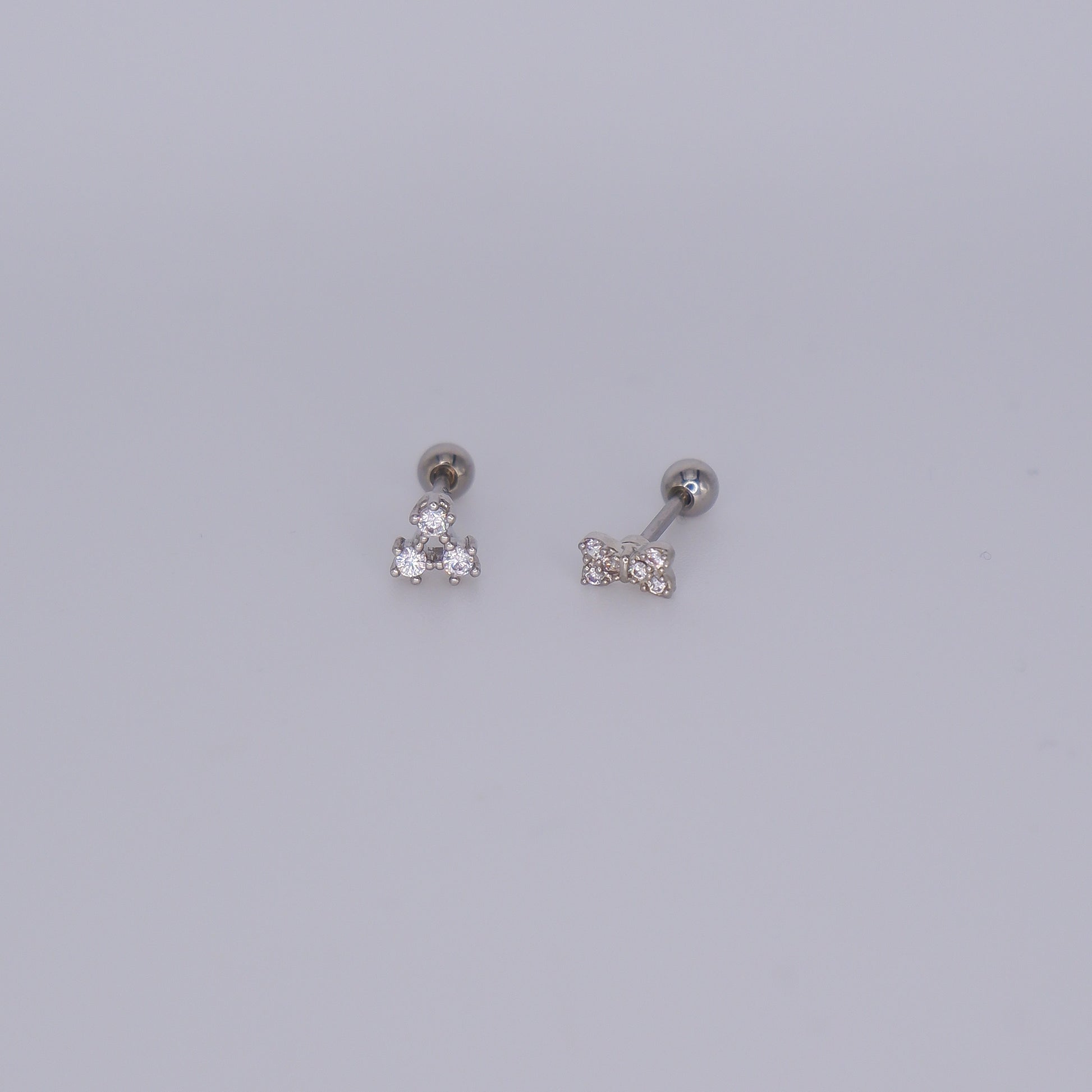 Piercing Bolinha Aço Inoxidável Prateado 3 brilhantes e Laço
