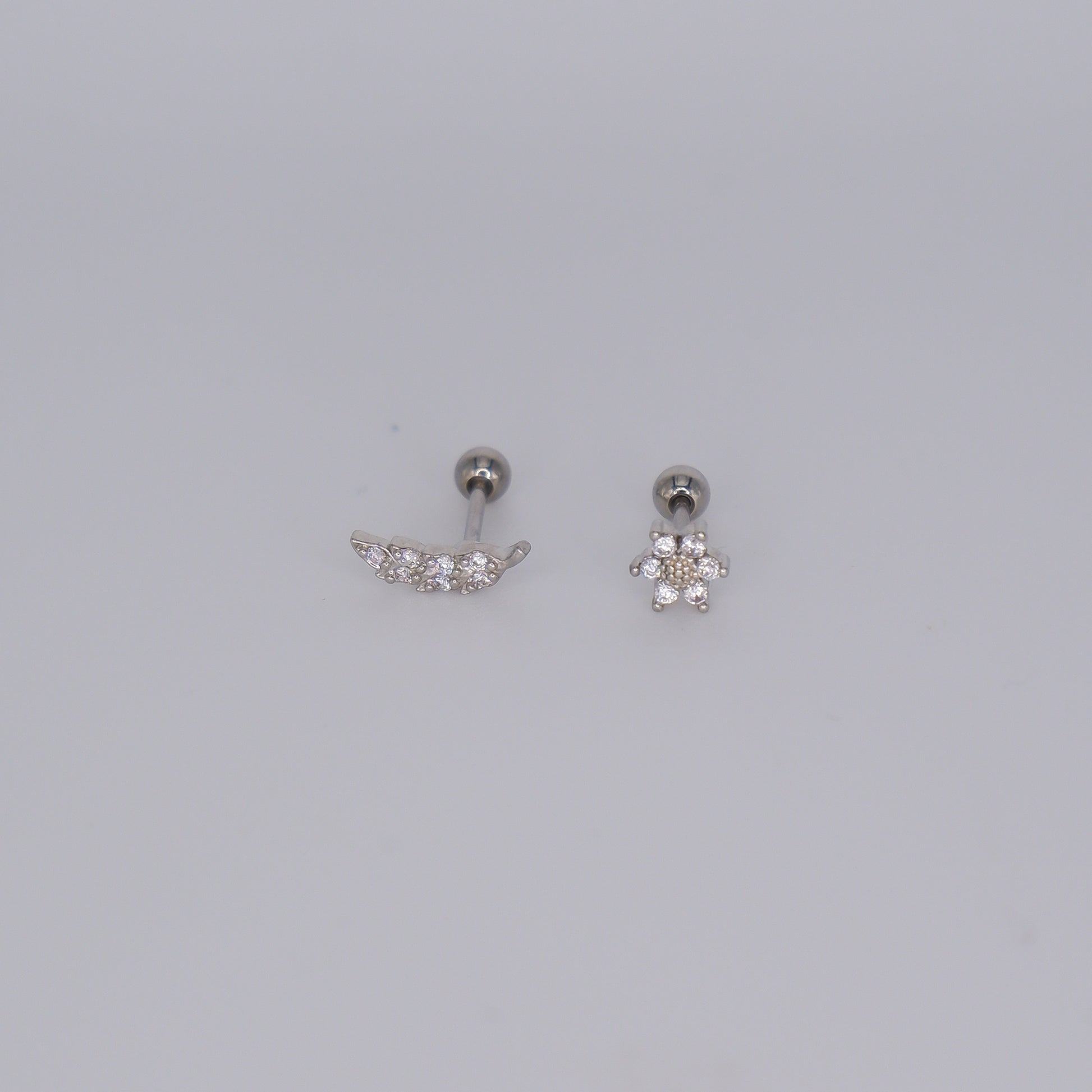 Piercing Bolinha Aço Inoxidável Prateado Folha e Flor