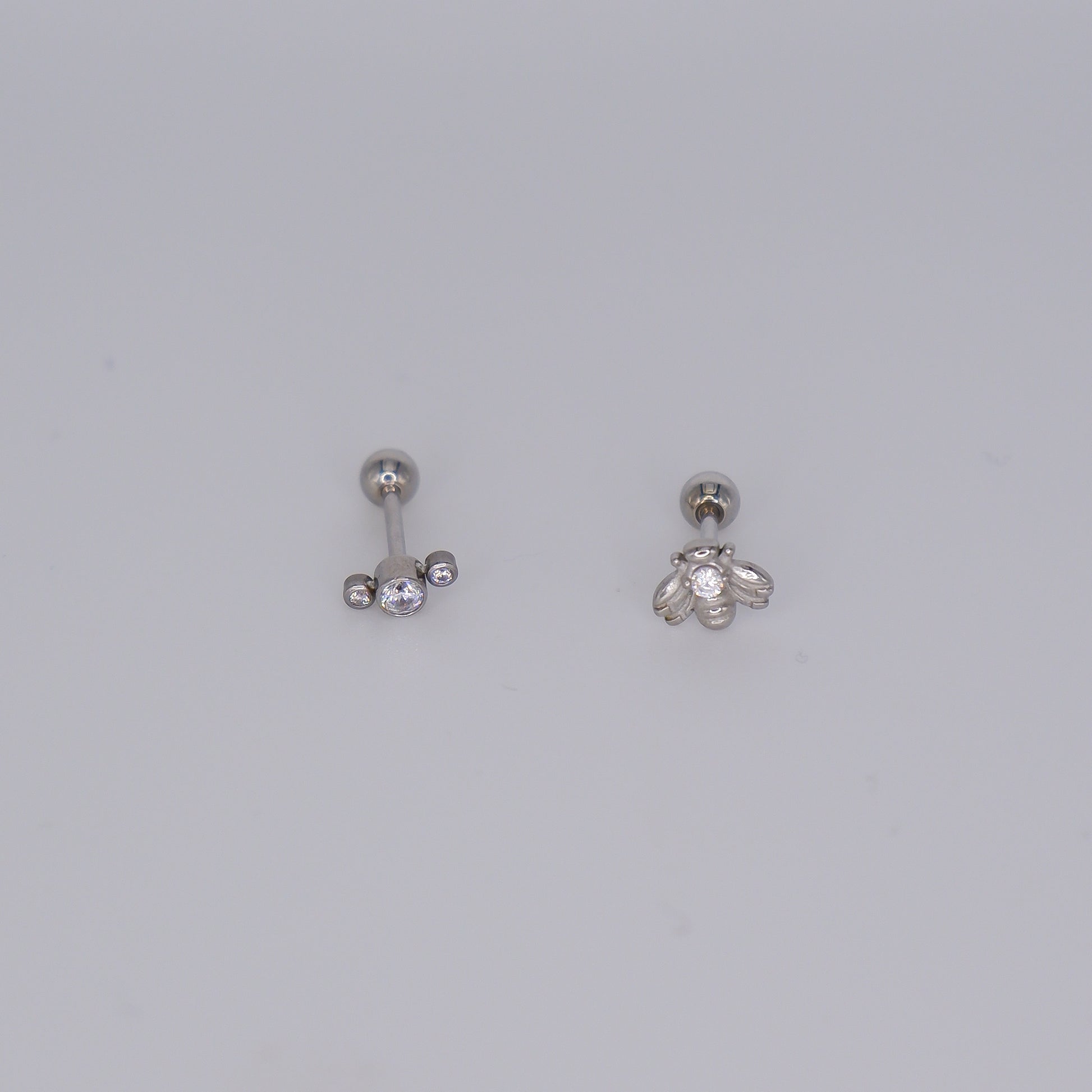 Piercing Bolinha Aço Inoxidável Prateado Risco e Abelha