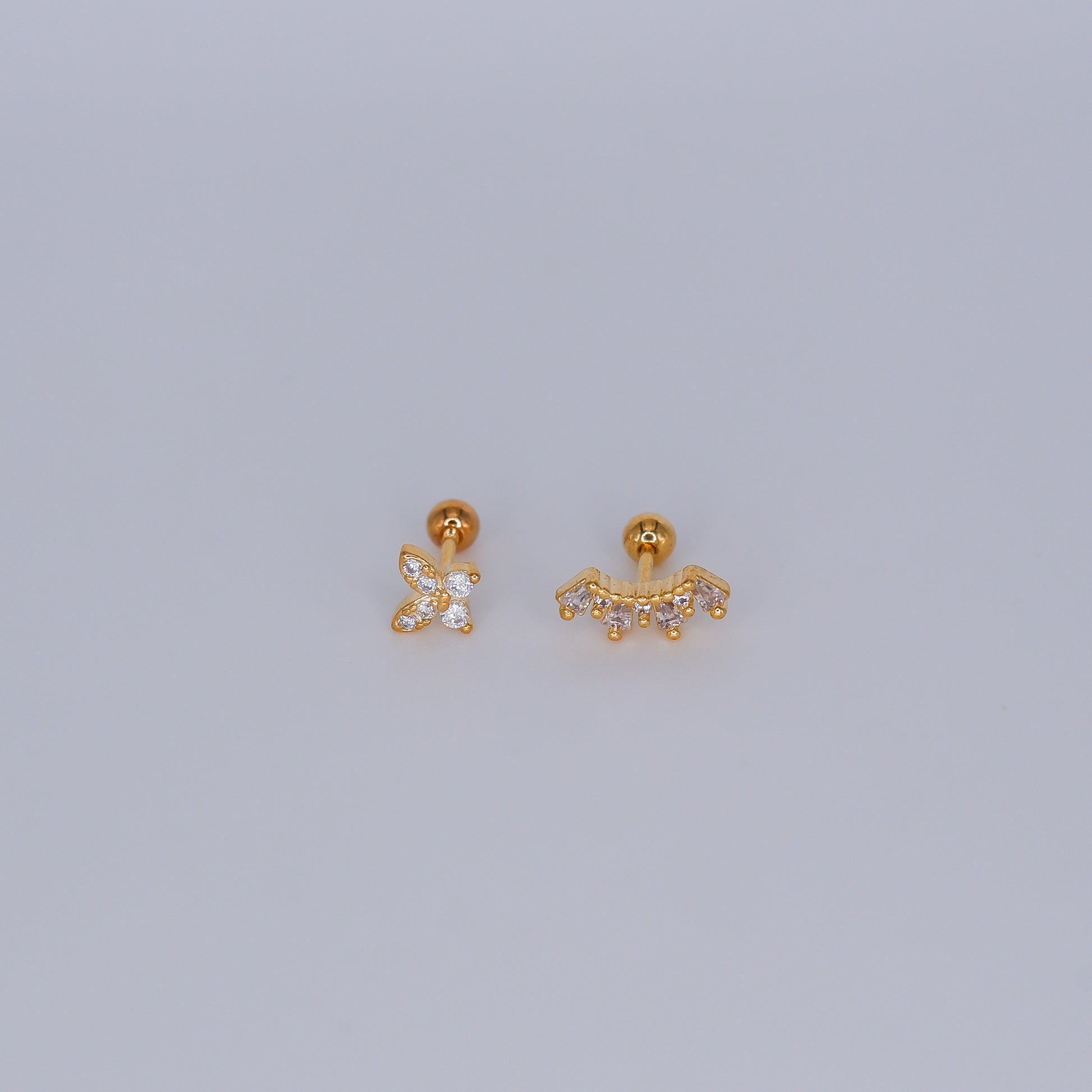 Piercing Bolinha Banho de Ouro Borboleta e Curvo