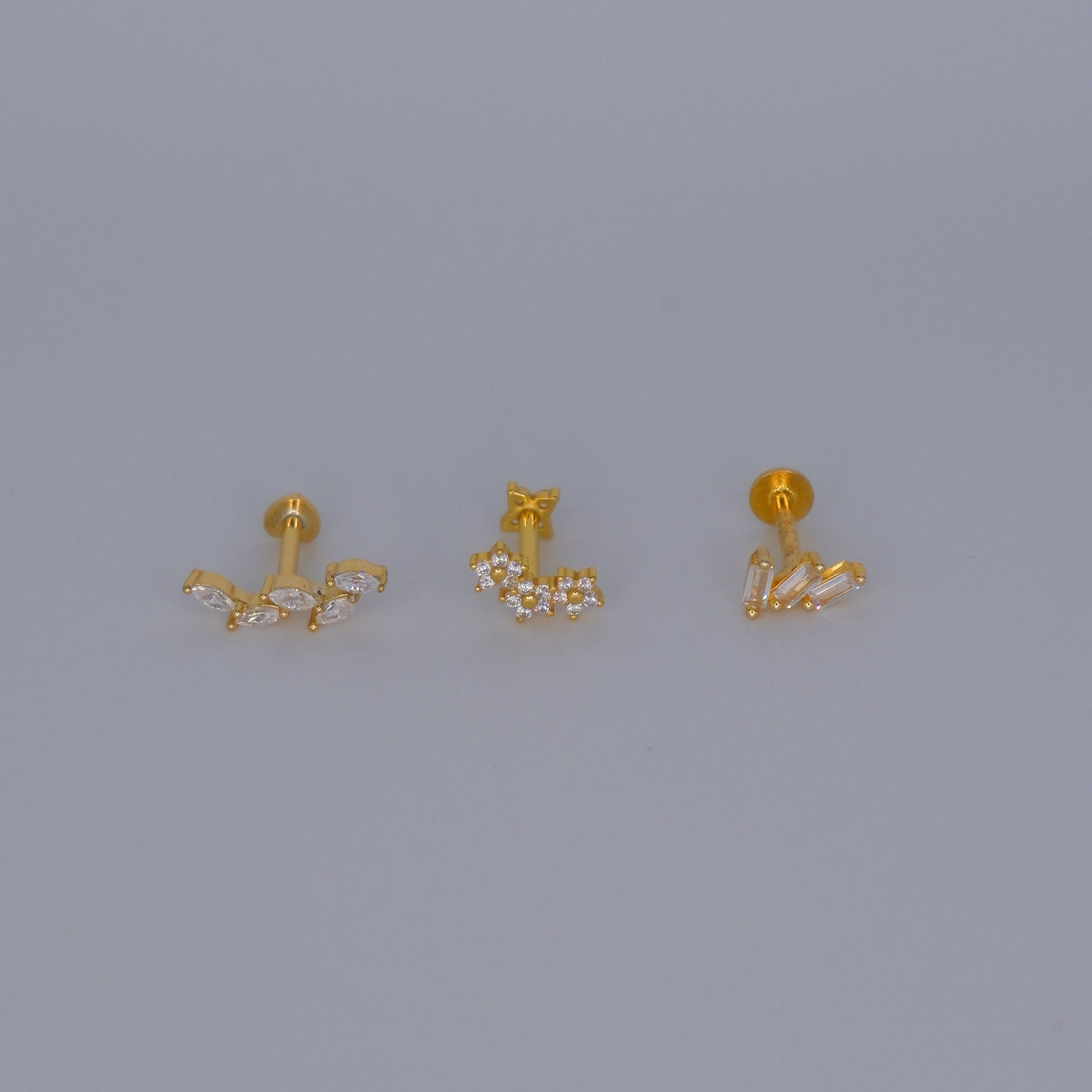 Piercings Achatados Dourados #12 Folha, Flores e 3 Rectângulos