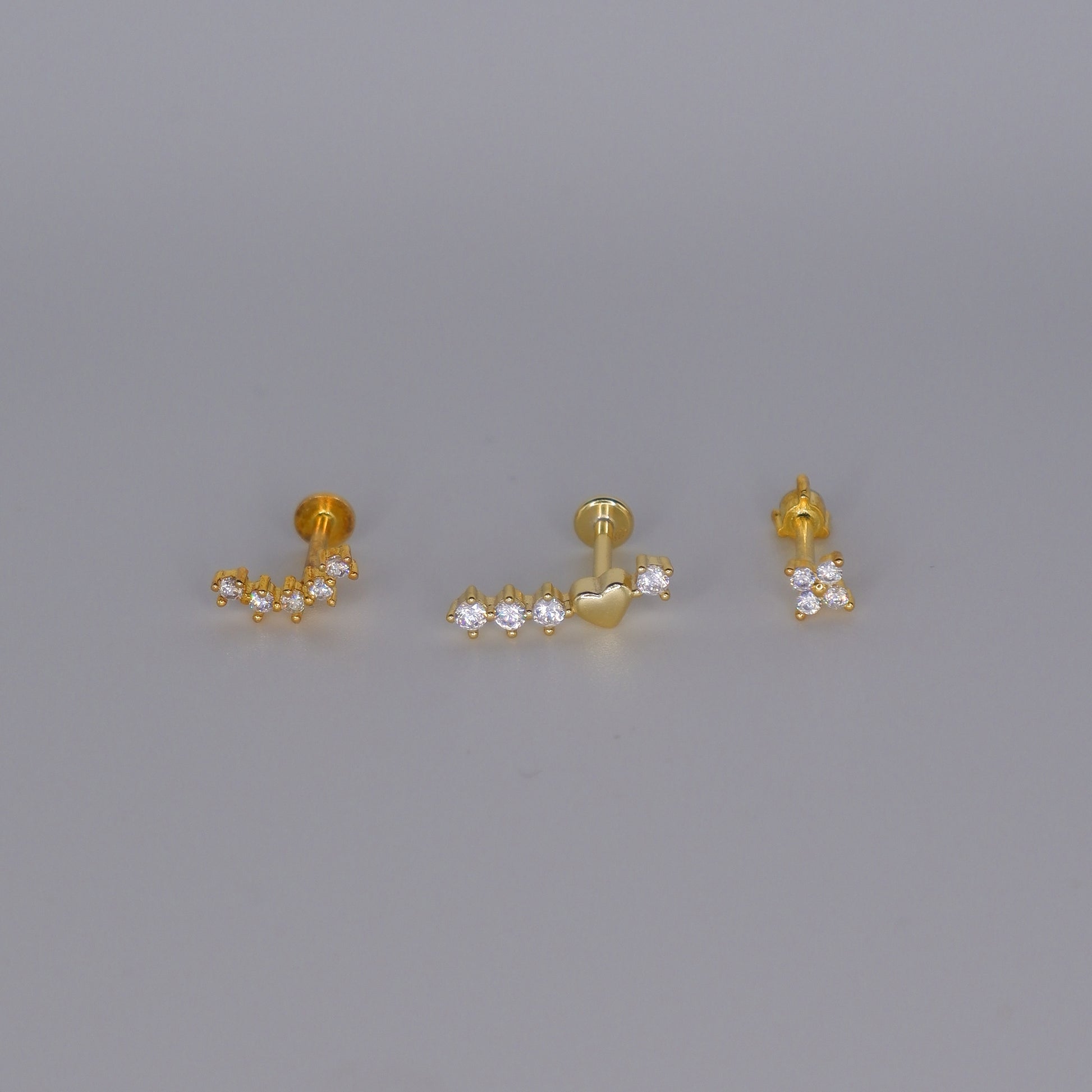 Piercings Achatados Dourados #14 Curvo, Coração e Flor