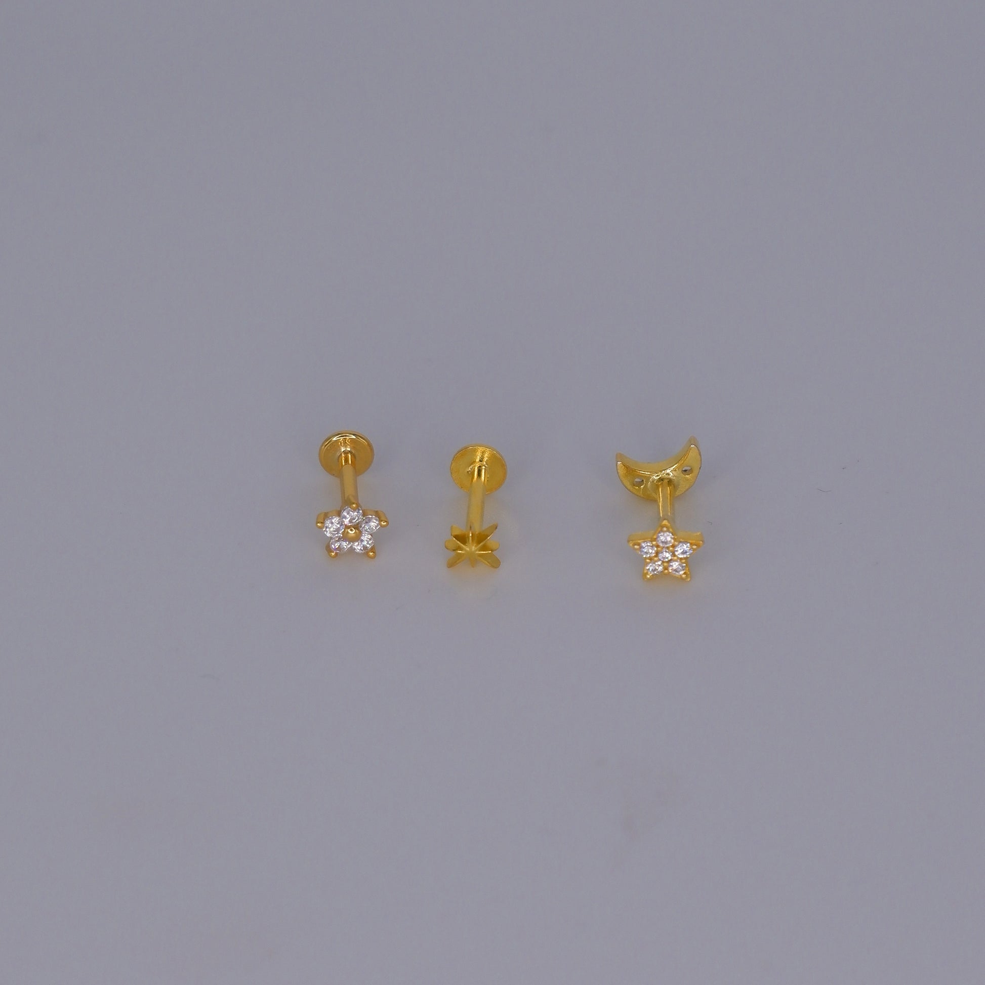Piercings Achatados Dourados #15 Flor e Estrelas