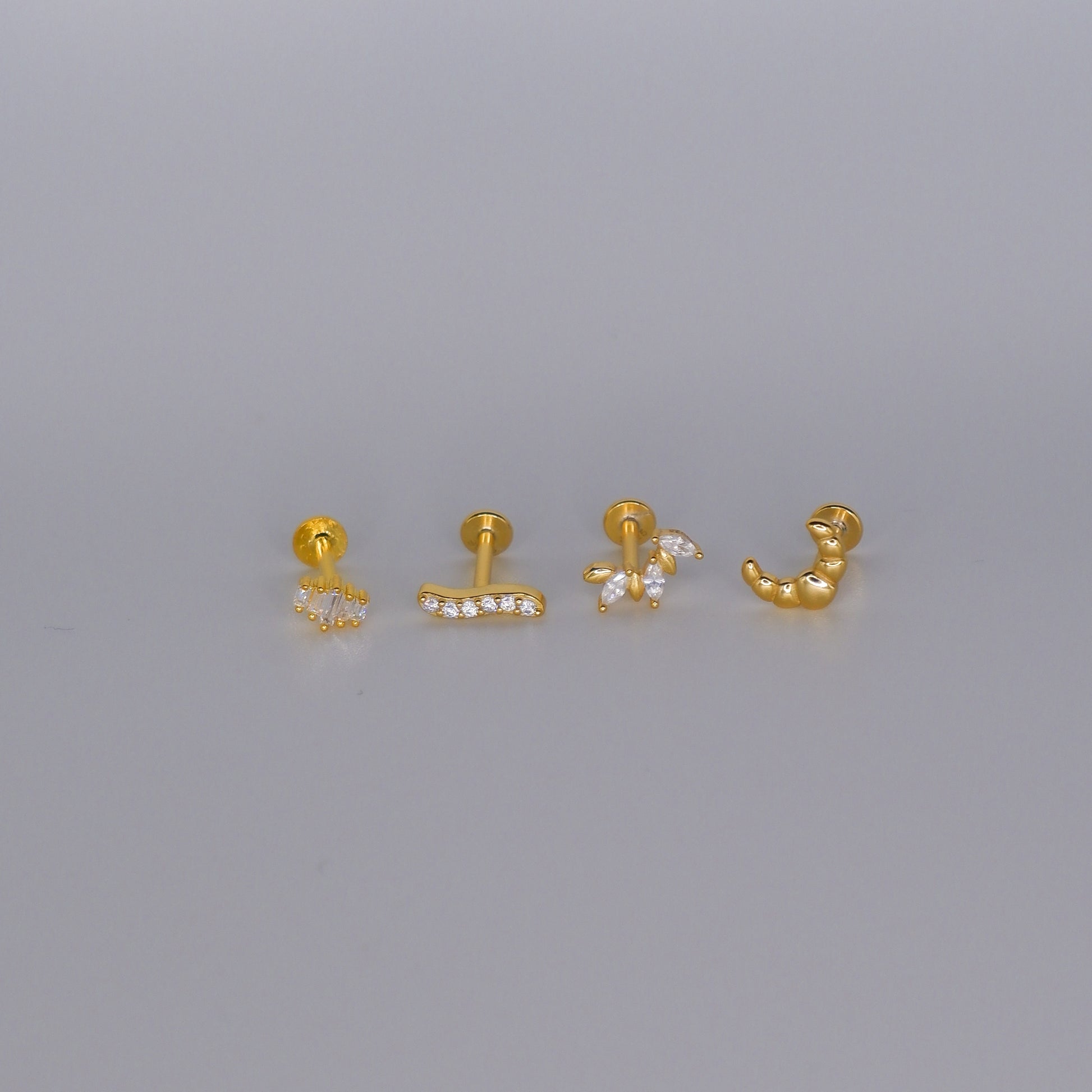 Piercings Achatados Dourados #18 Brilhantes e Croissant