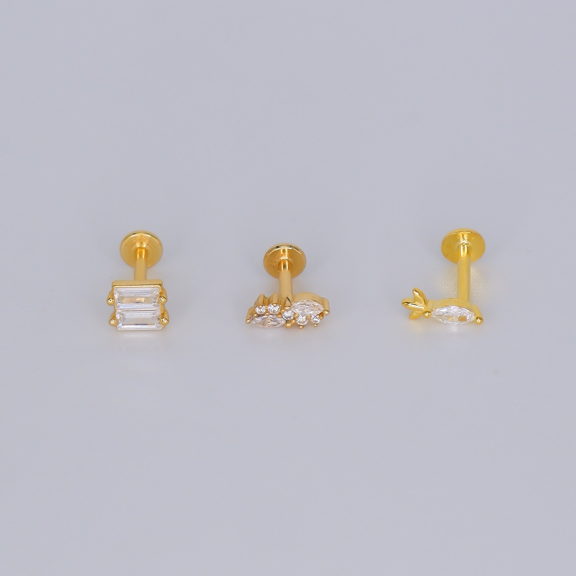 Piercings Achatados Dourados #27 Risca, Brilhos e Oval
