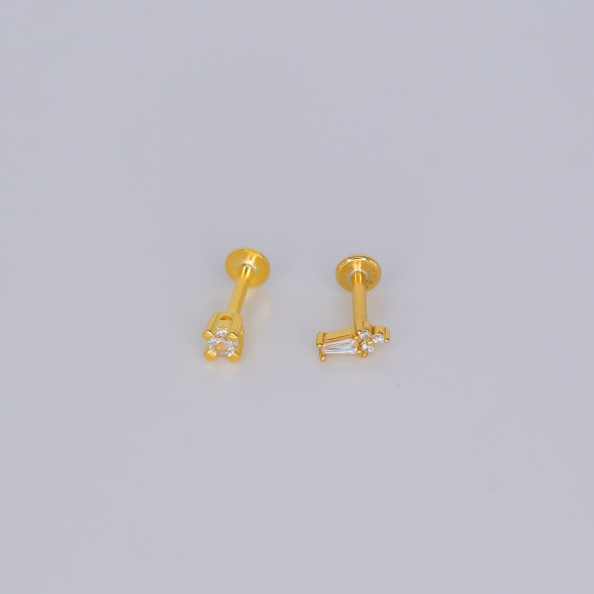 Piercings Achatados Dourados #28 Ponto de Luz e Rectângulo e flor