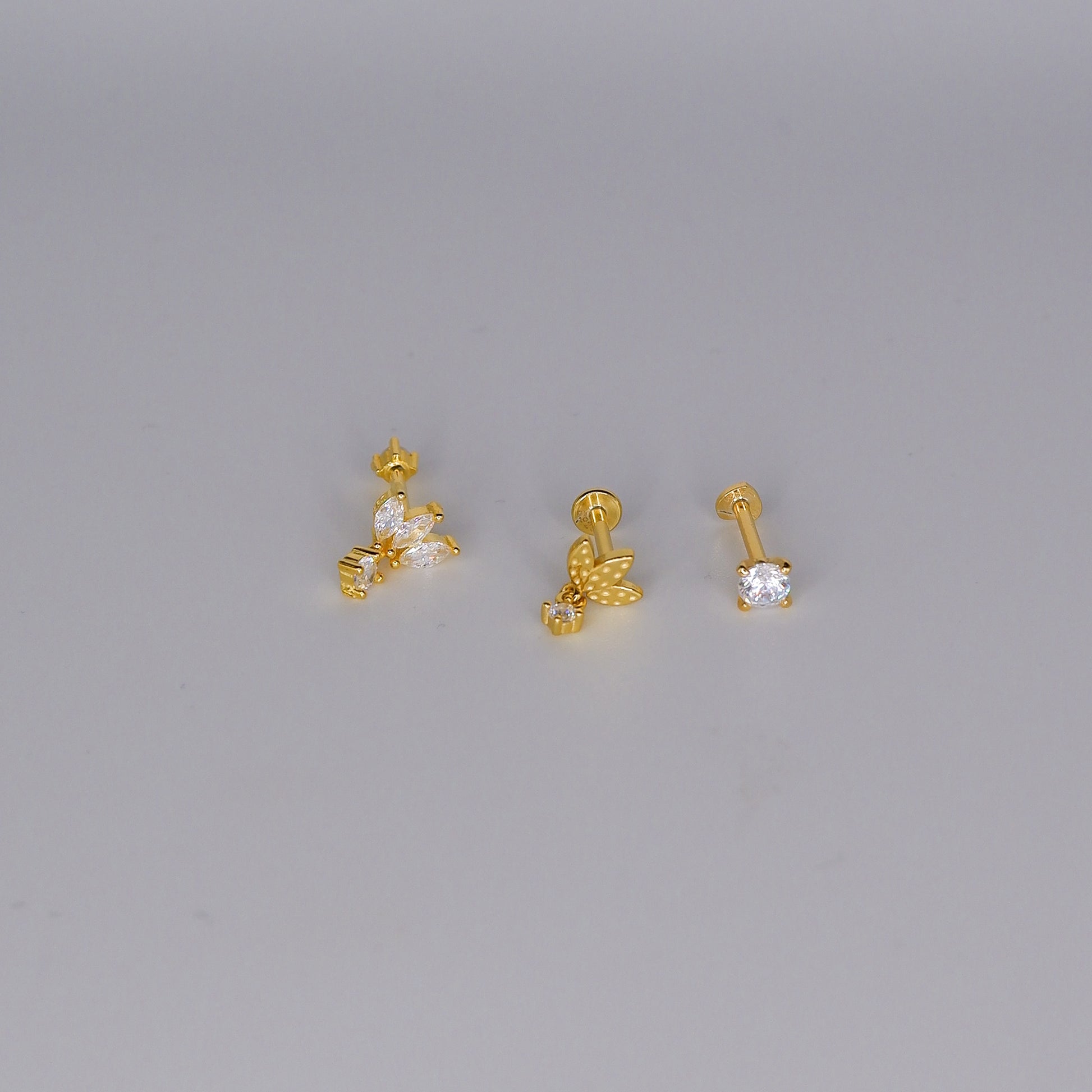 Piercings Achatados Dourados #8 Meia Flor e Ponto de Luz