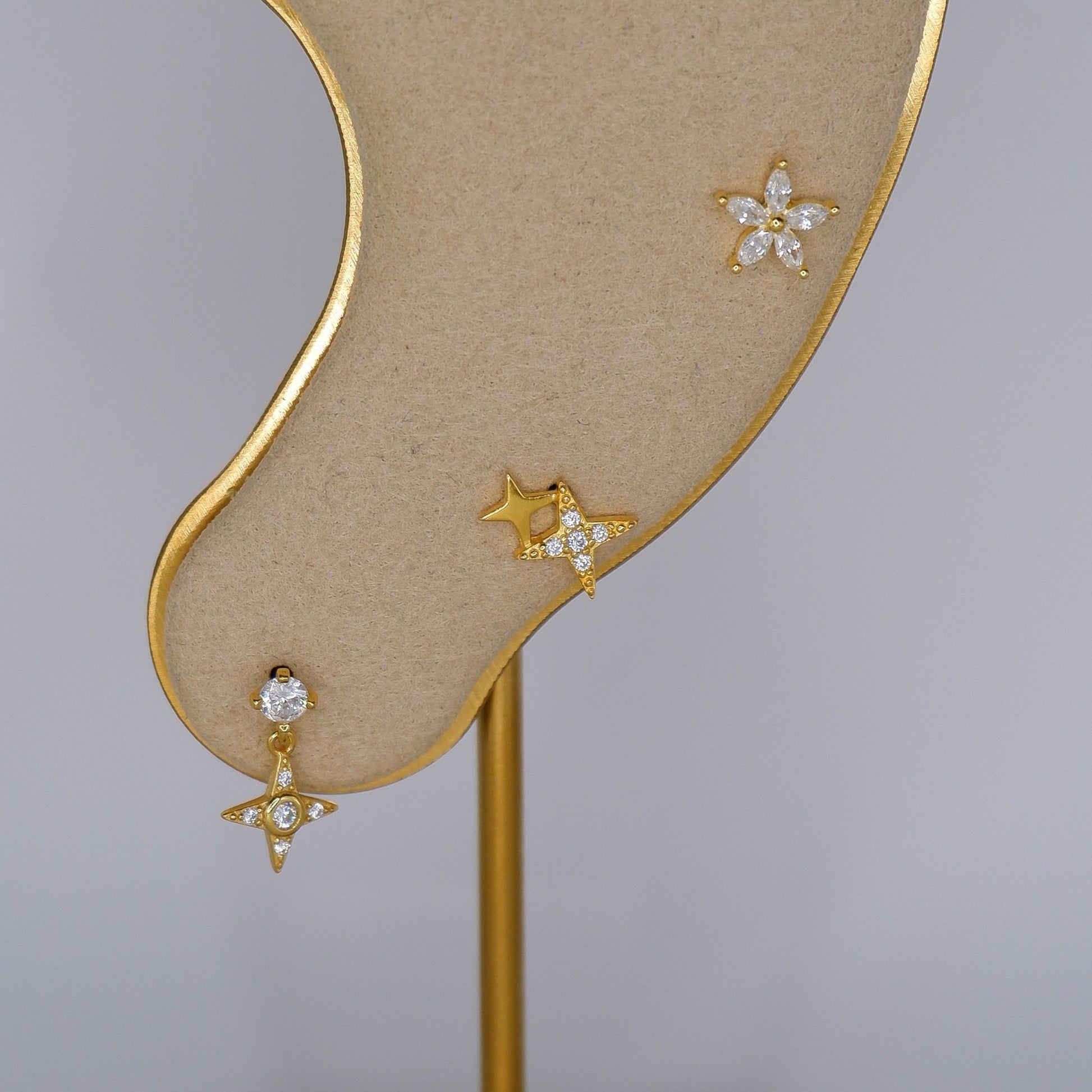Piercings Bolinha Dourados #19 Estrelas e Flor