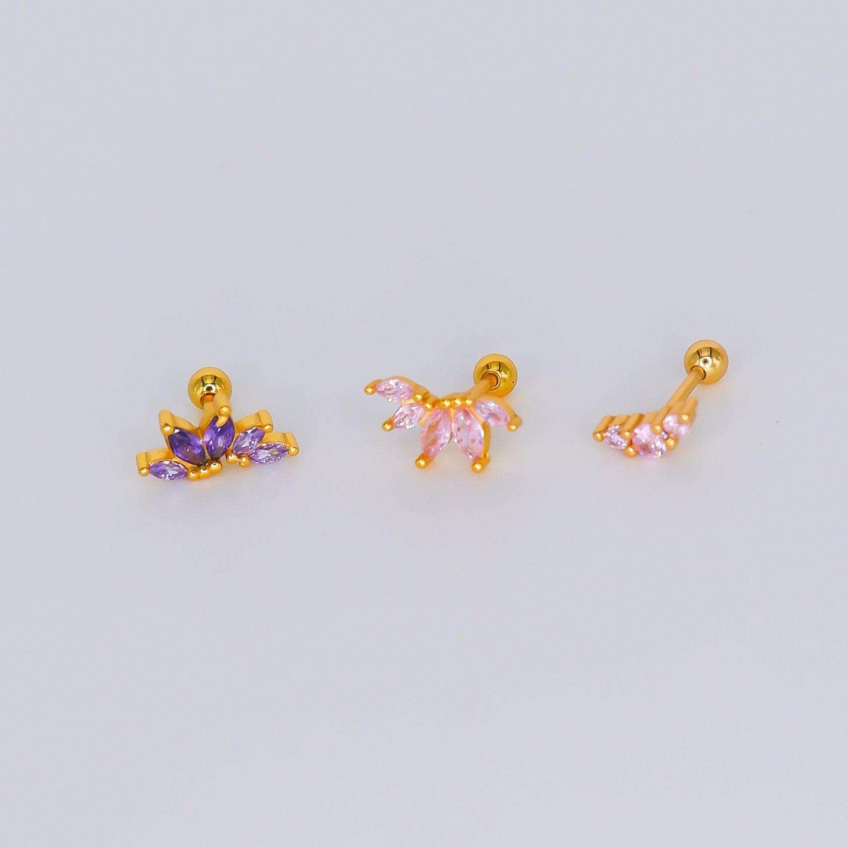 Piercings Bolinha Longo e Curvo Lilás e Rosa bébé