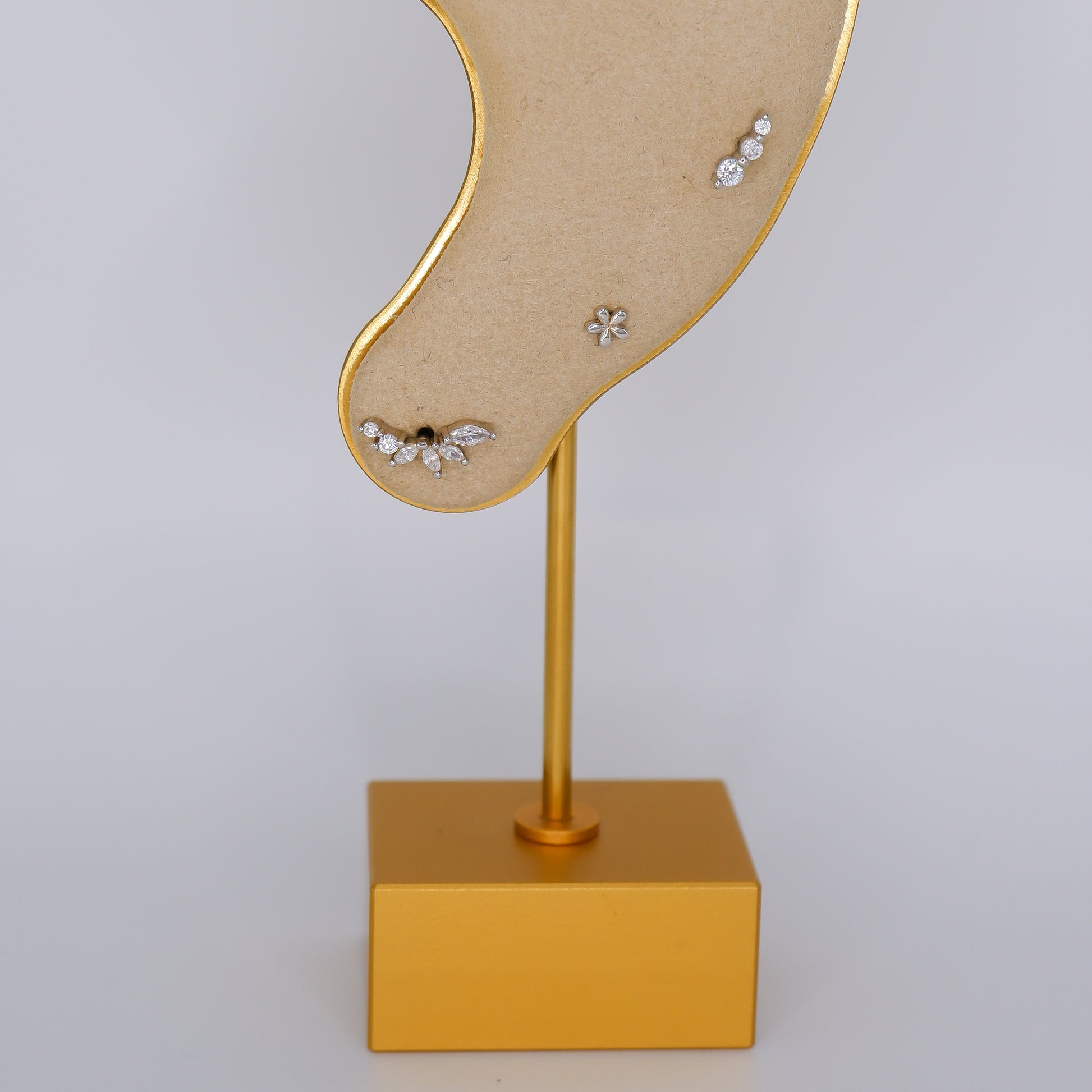 Piercings Bolinha Prateados #15 Curvo, Flor e 3 Brilhos