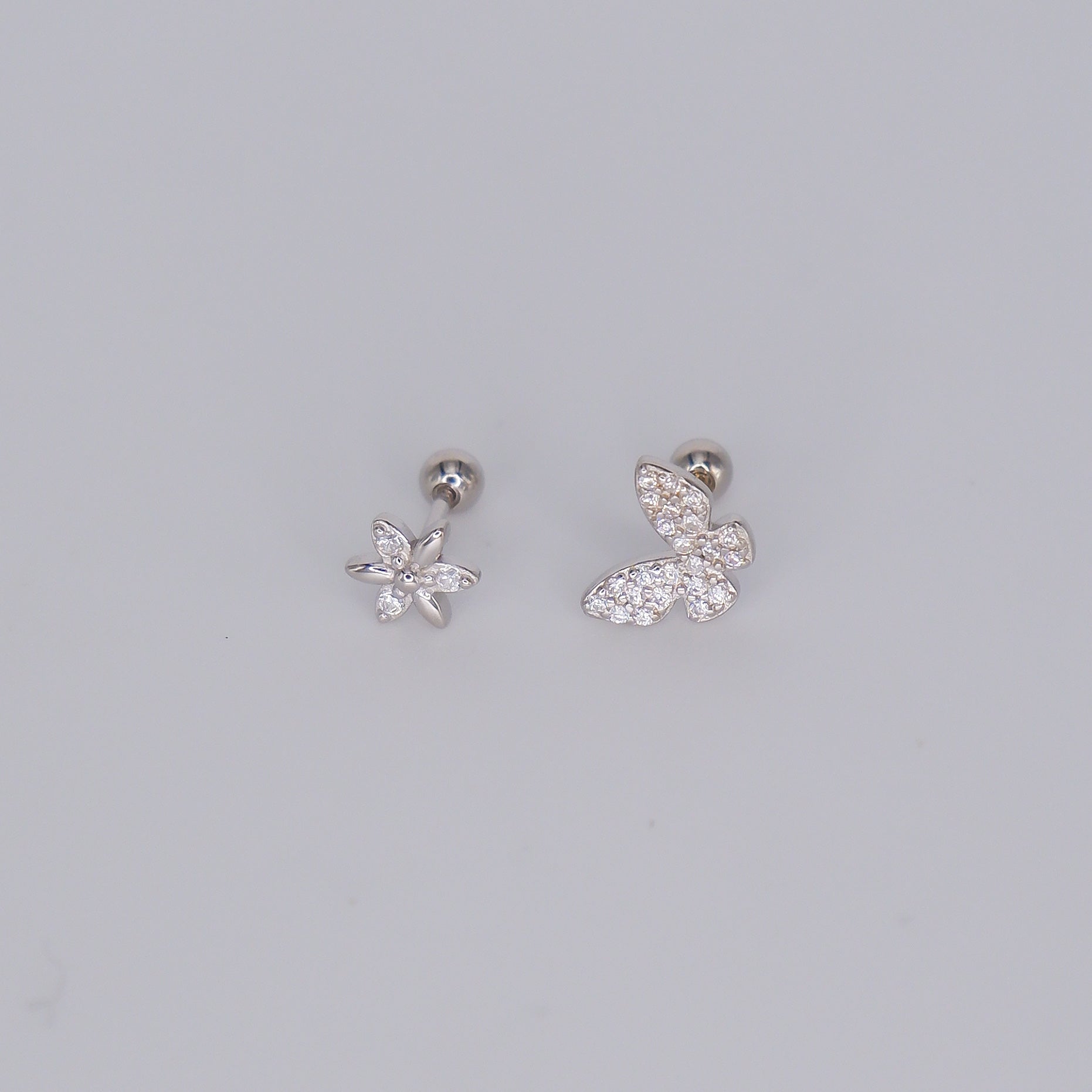 Piercings Bolinha Prateados #23 Flor e Borboleta