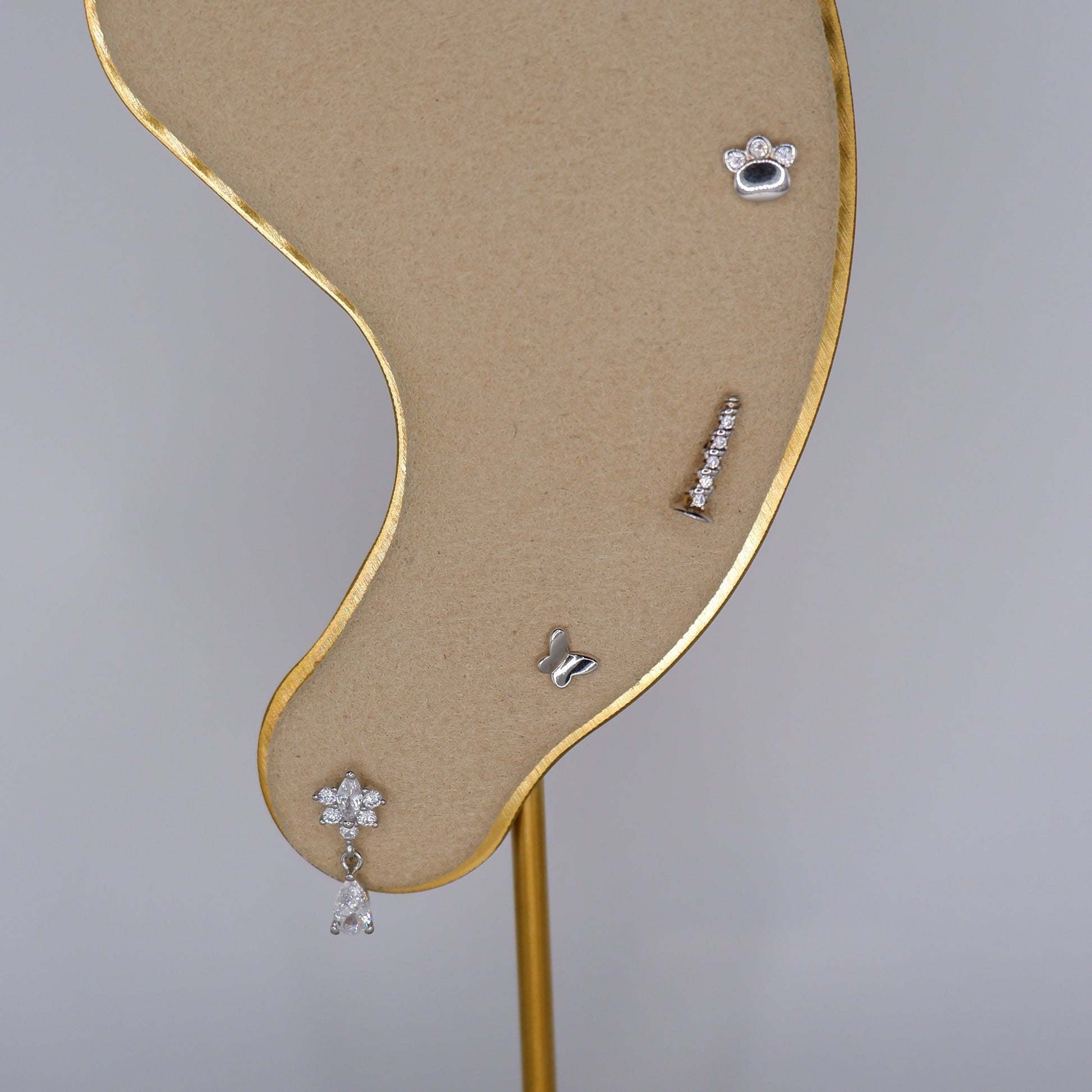 Piercings Bolinha Prateados #11 Flor, Borboleta, Prego e Pata