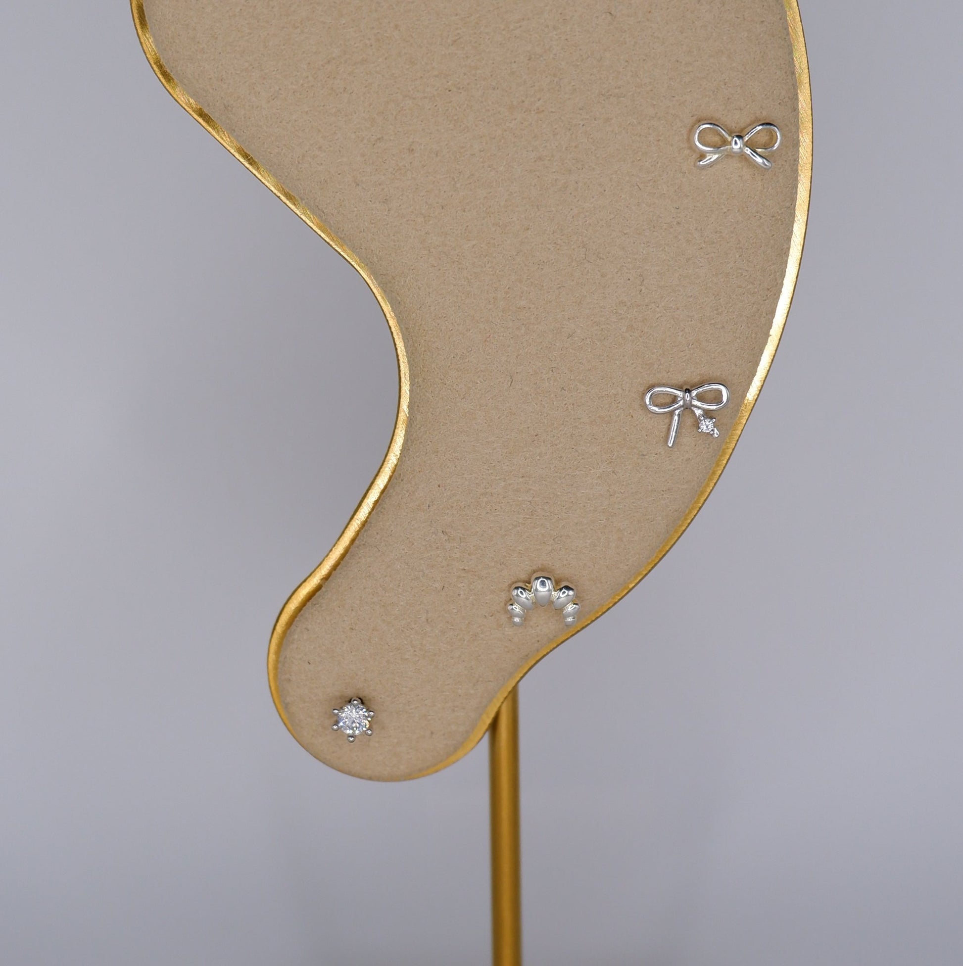 Piercings Bolinha Prateados #13 Croissant e Laços