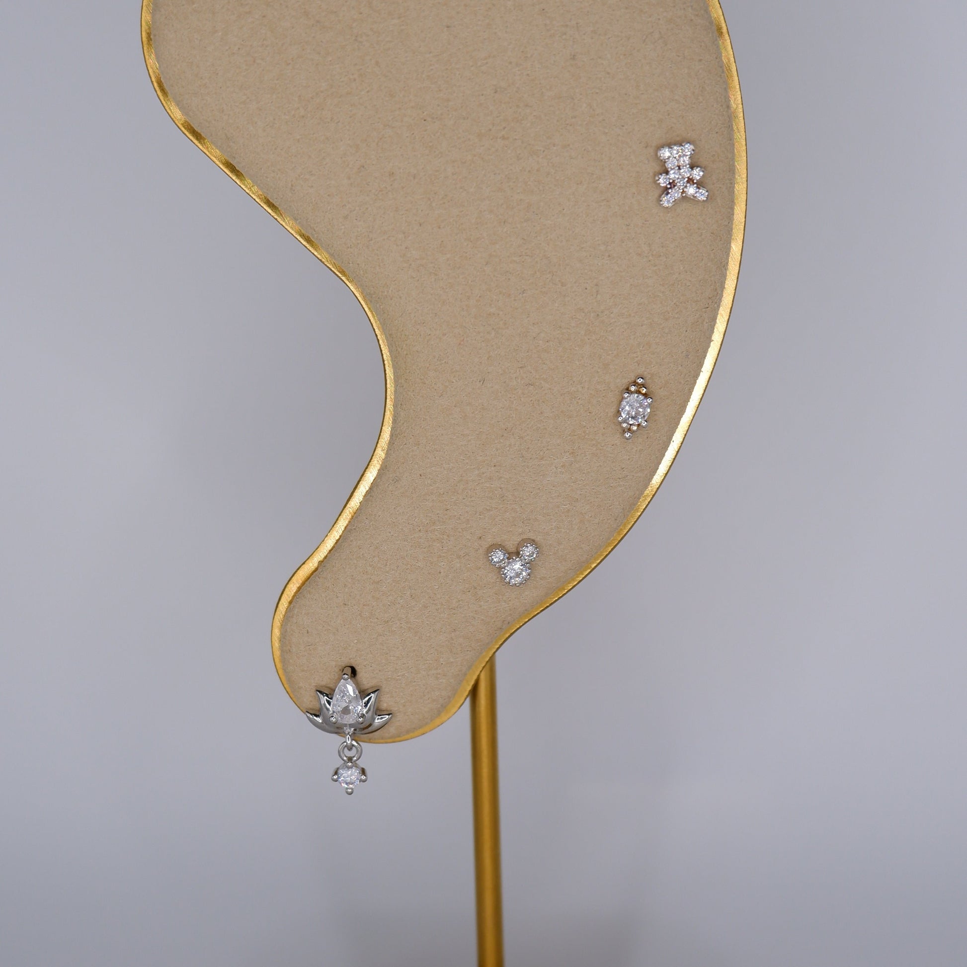 Piercings Bolinha Prateados #5 Flor de Lotos, Mickey e Ursinho