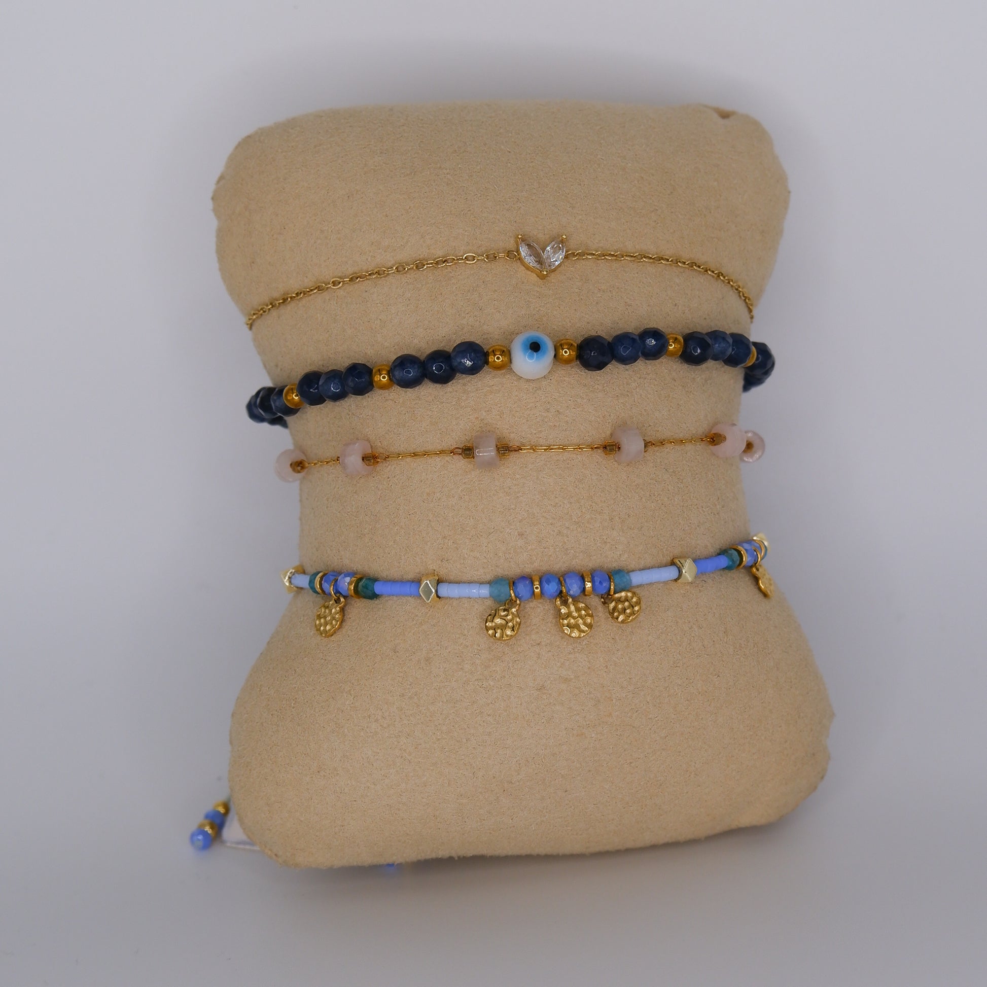 Pulseira Aço Inoxidável Brilhantes, Olho, Pedras e Azul Ajustável
