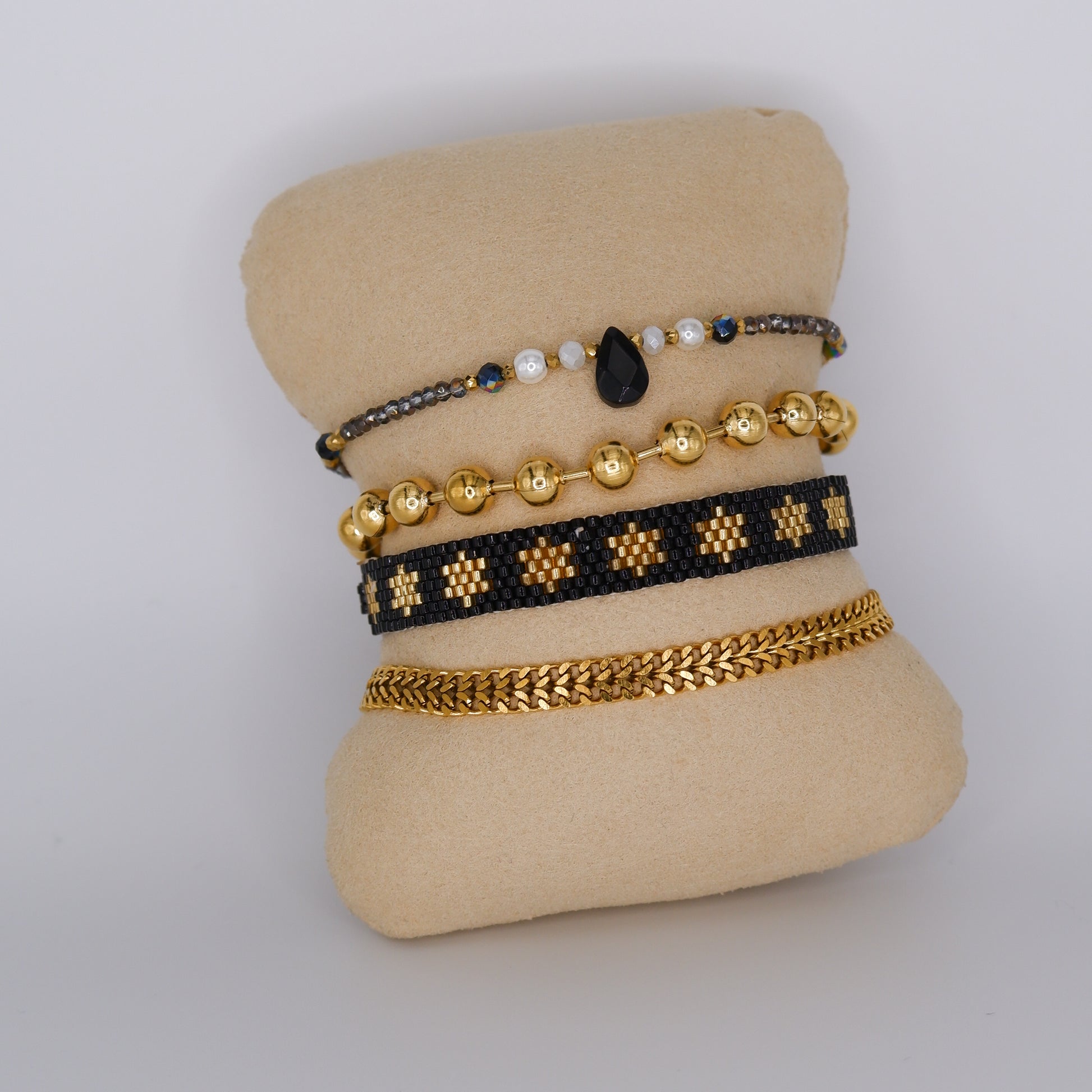 Pulseira Aço Inoxidável Gota Pretas, Bolas, Estrelas e Malha