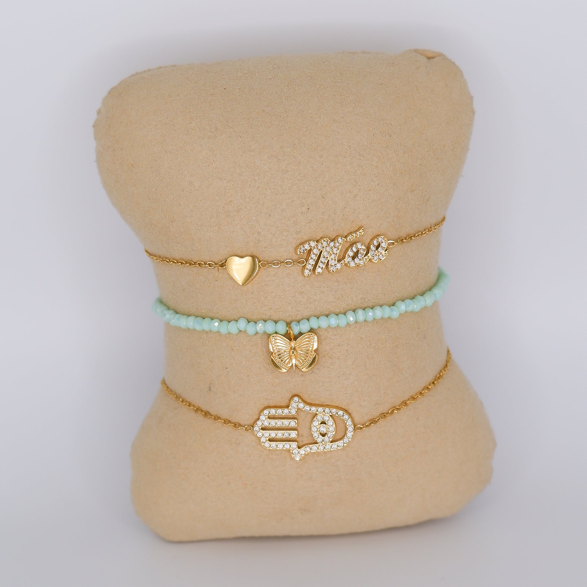 Pulseira Aço Inoxidável Mãe, Borboleta e Mão Fátima
