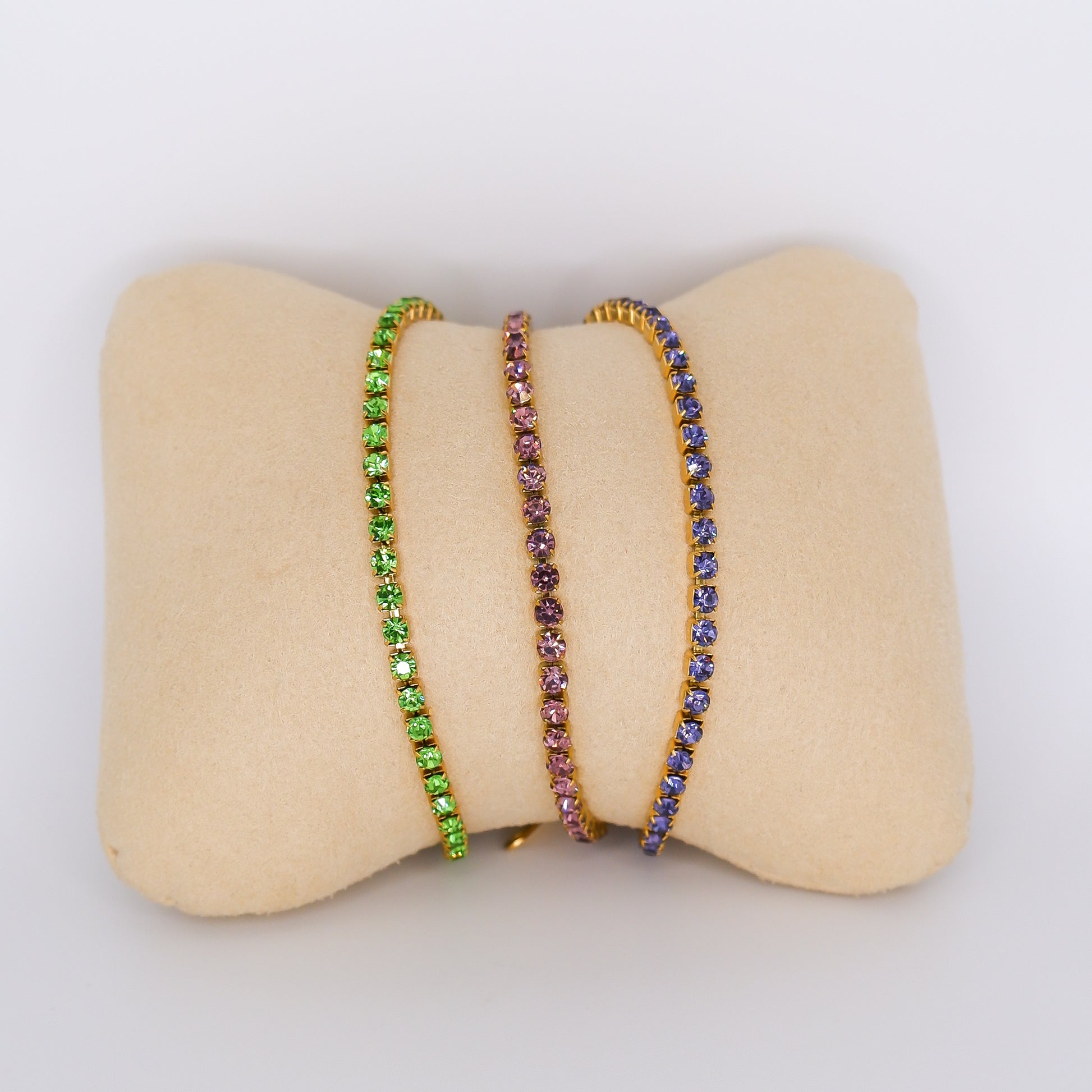 Pulseira Aço Inoxidável Reviera Verde, Lilás e Roxa