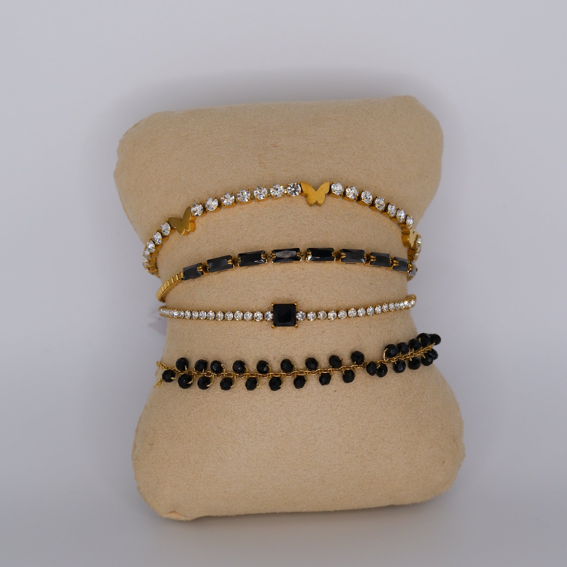 Pulseira Aço Inoxidável Rivieras Tons Transparentes e Preto