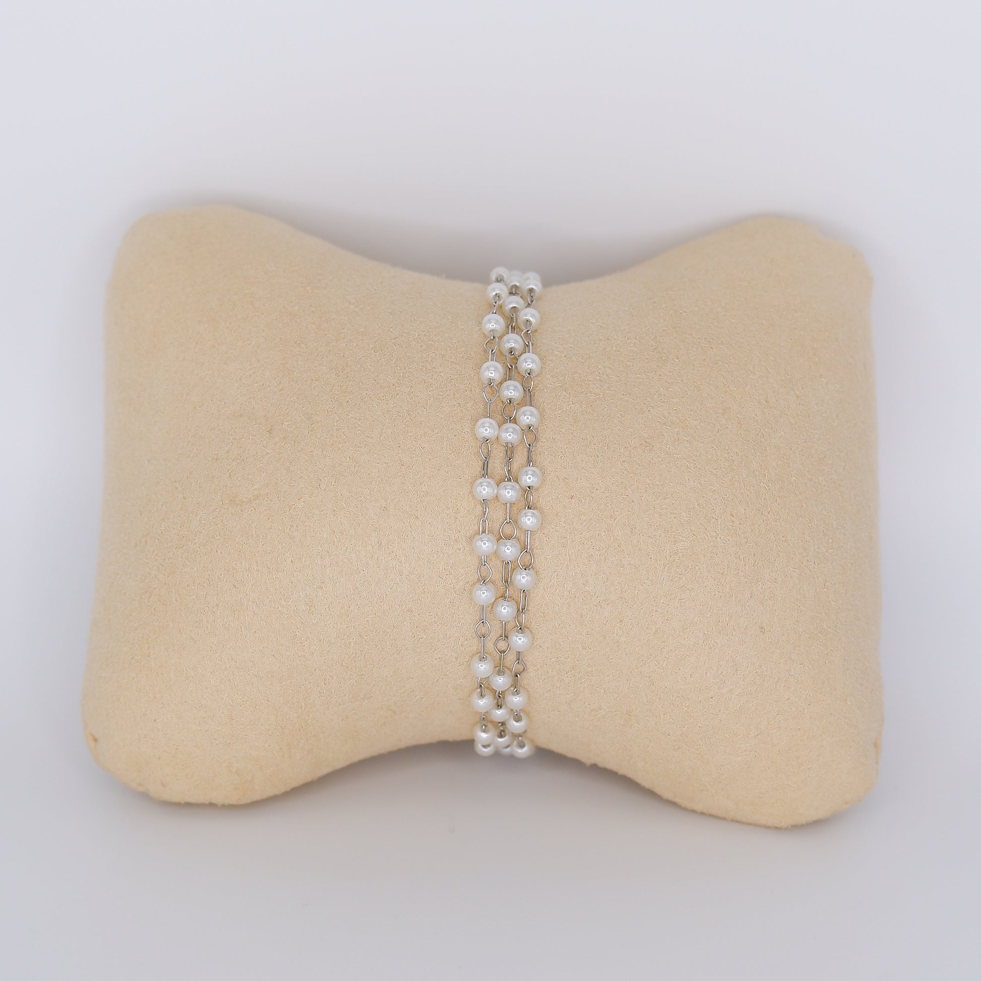 Pulseira Aço Inoxidável Bolinhas Pérolas Tripla