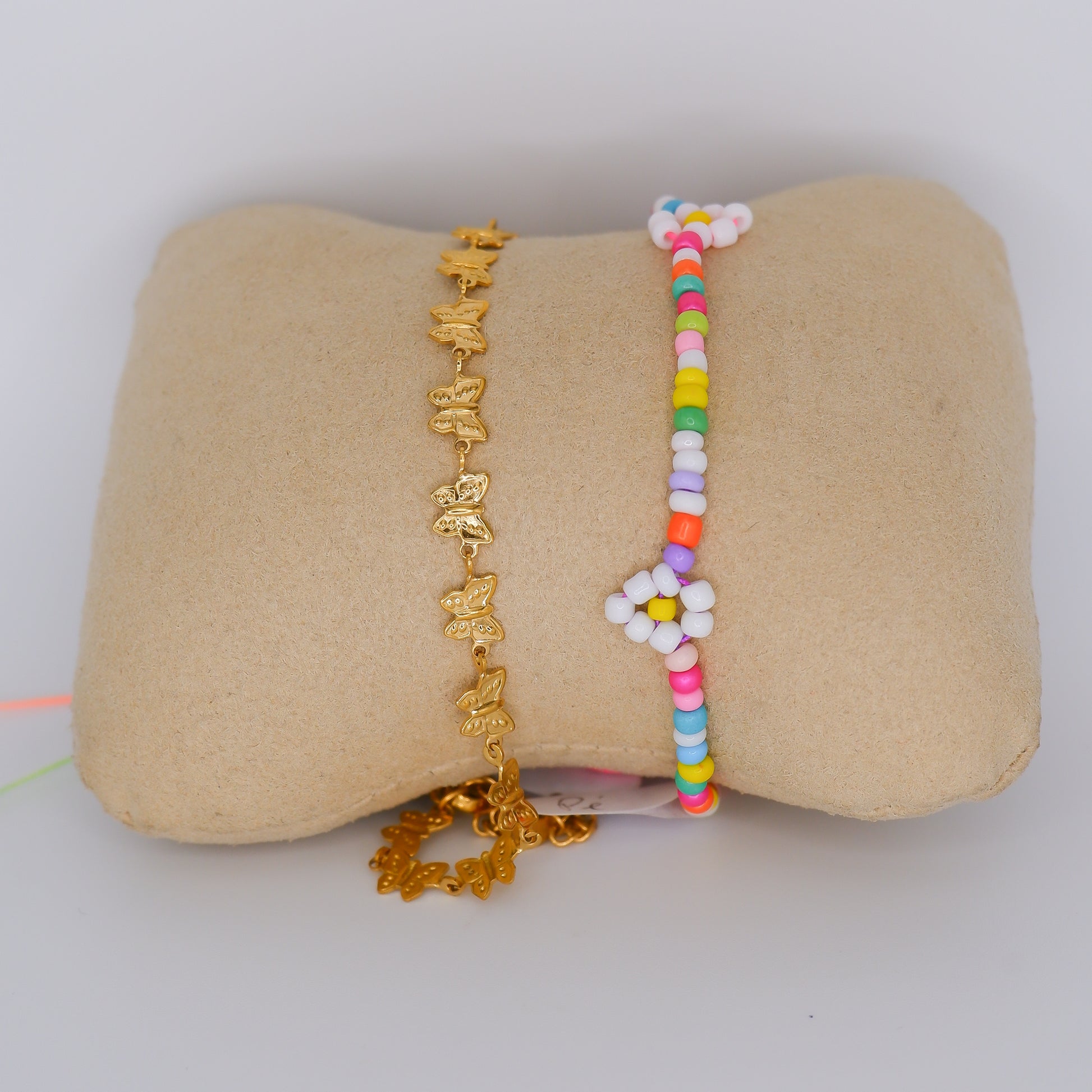 Pulseira Pé Dourada Borboletas e Miçangas