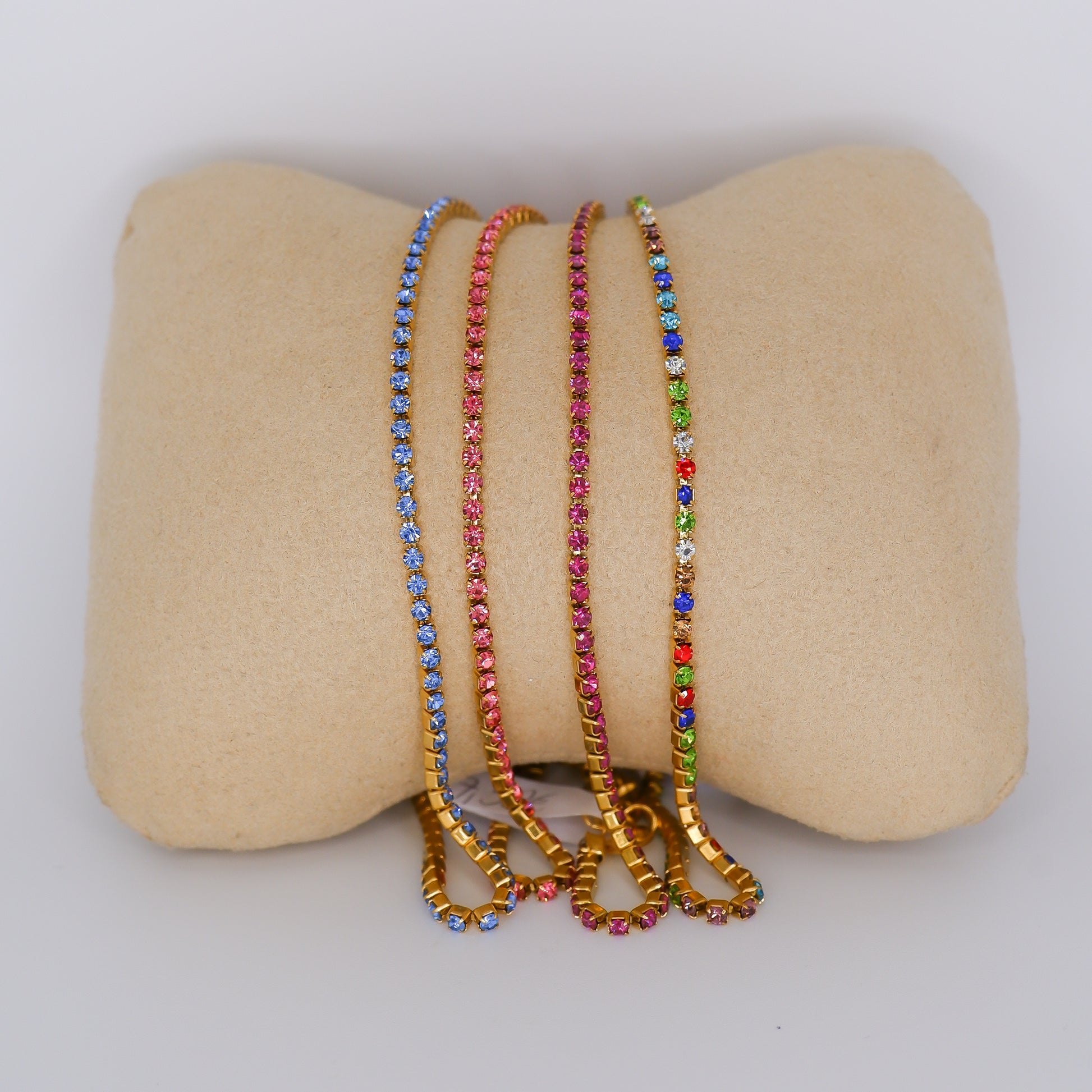 Pulseira Pé Dourada Riviera Azul, Rosa e Colorida