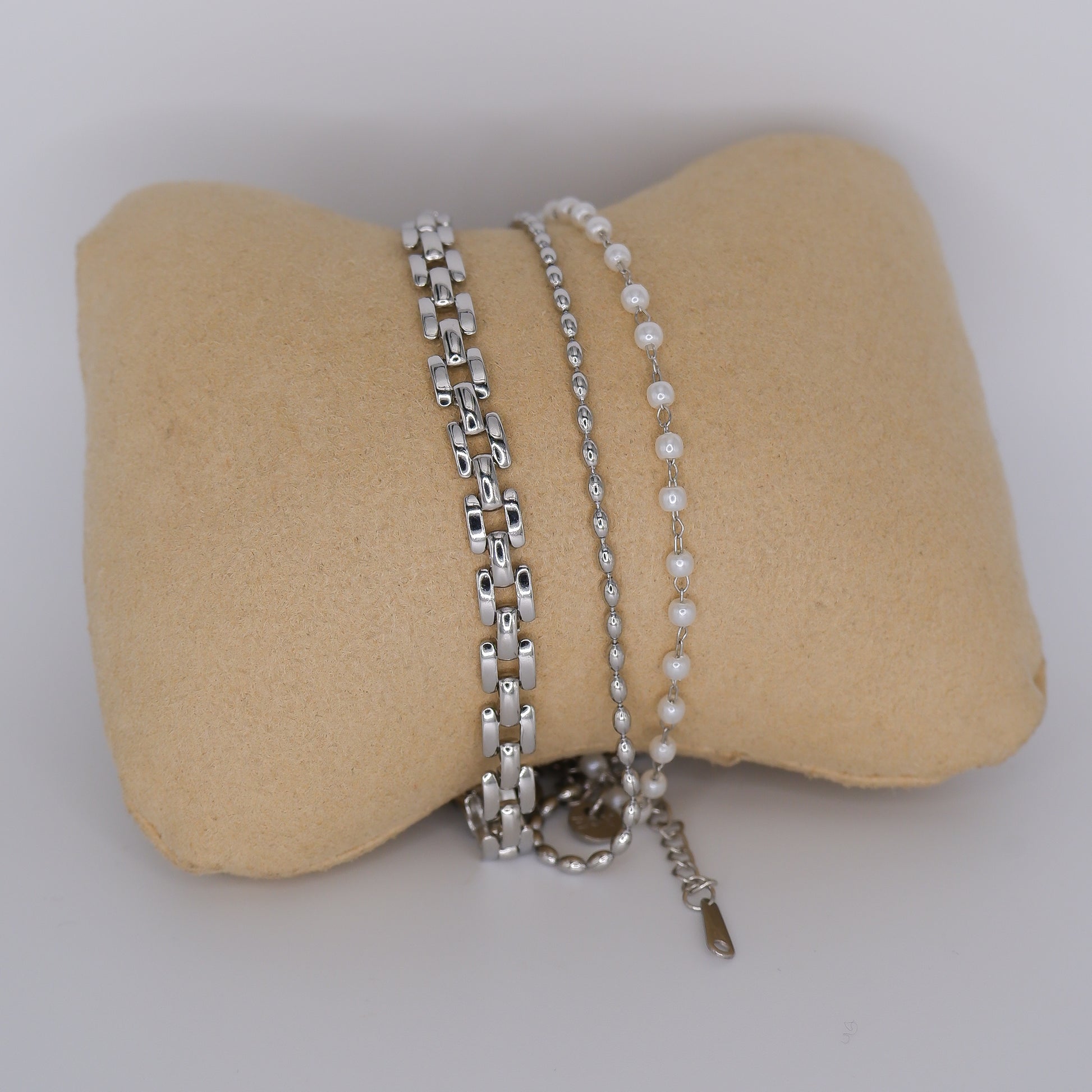 Existem 3 materiais diferentes:aço, material hipoalergenico e Prata S925.