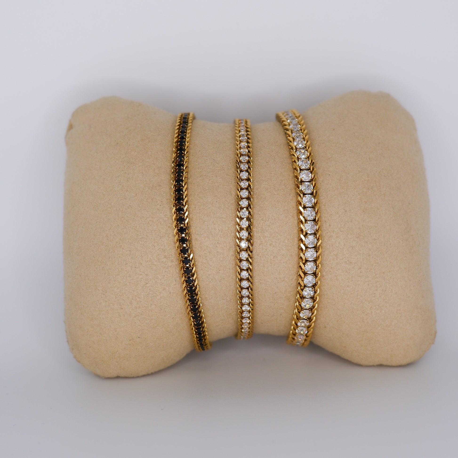 Existem 3 materiais diferentes:aço, material hipoalergenico e Prata S925.
