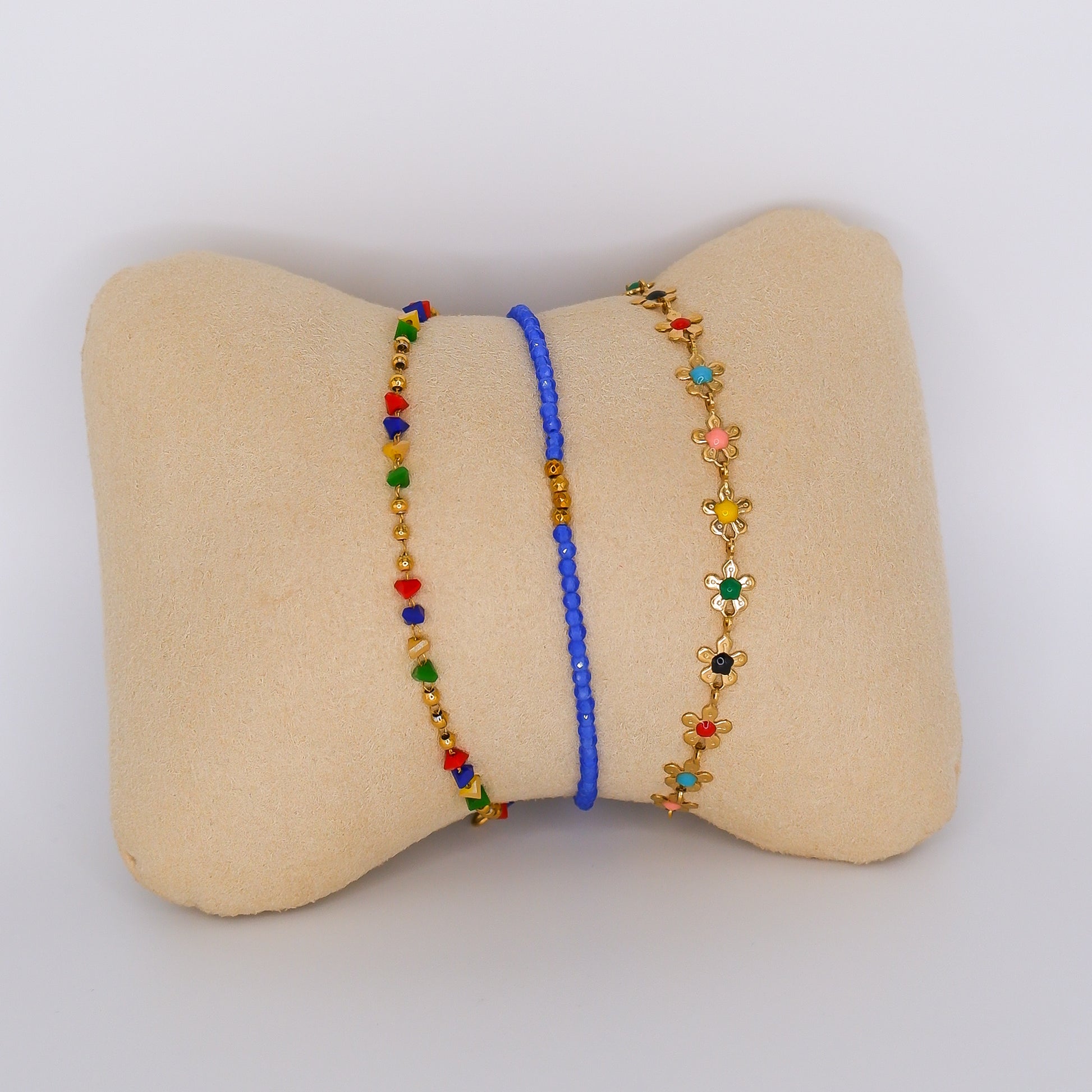 Pulseiras Aço Inoxidável Pedras Coloridas, Pedras Azuis e Flores