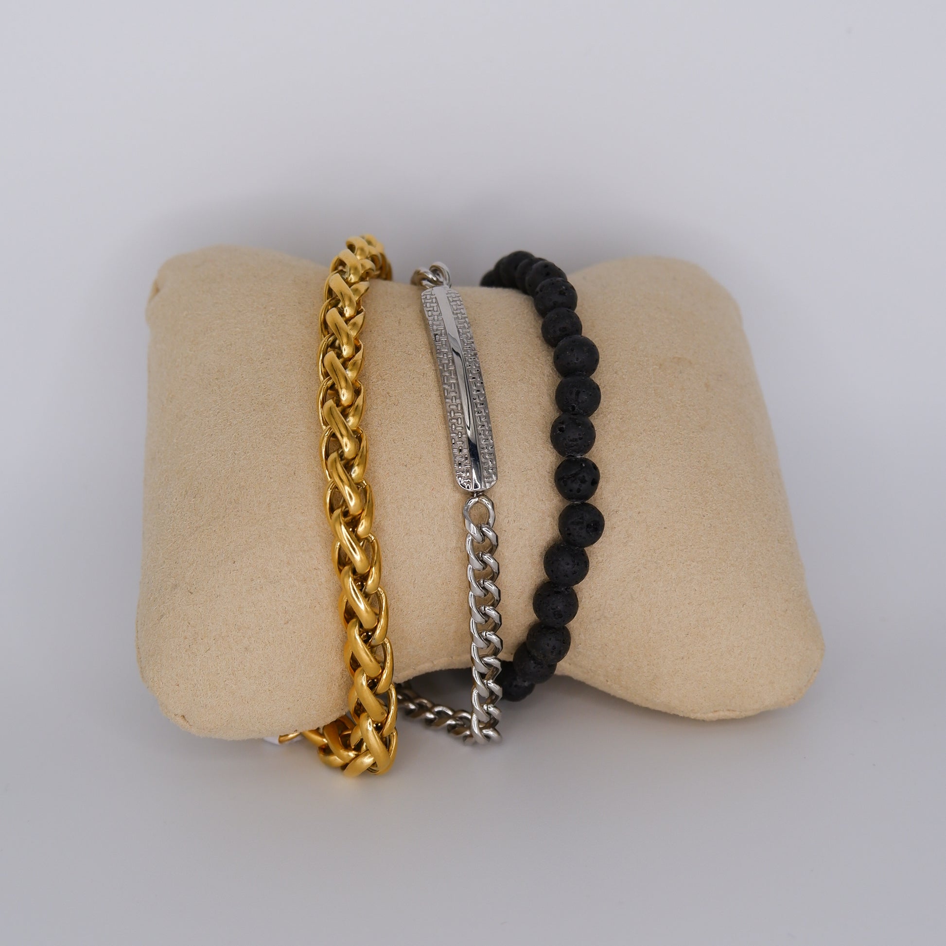 Existem 3 materiais diferentes:aço, material hipoalergenico e Prata S925.