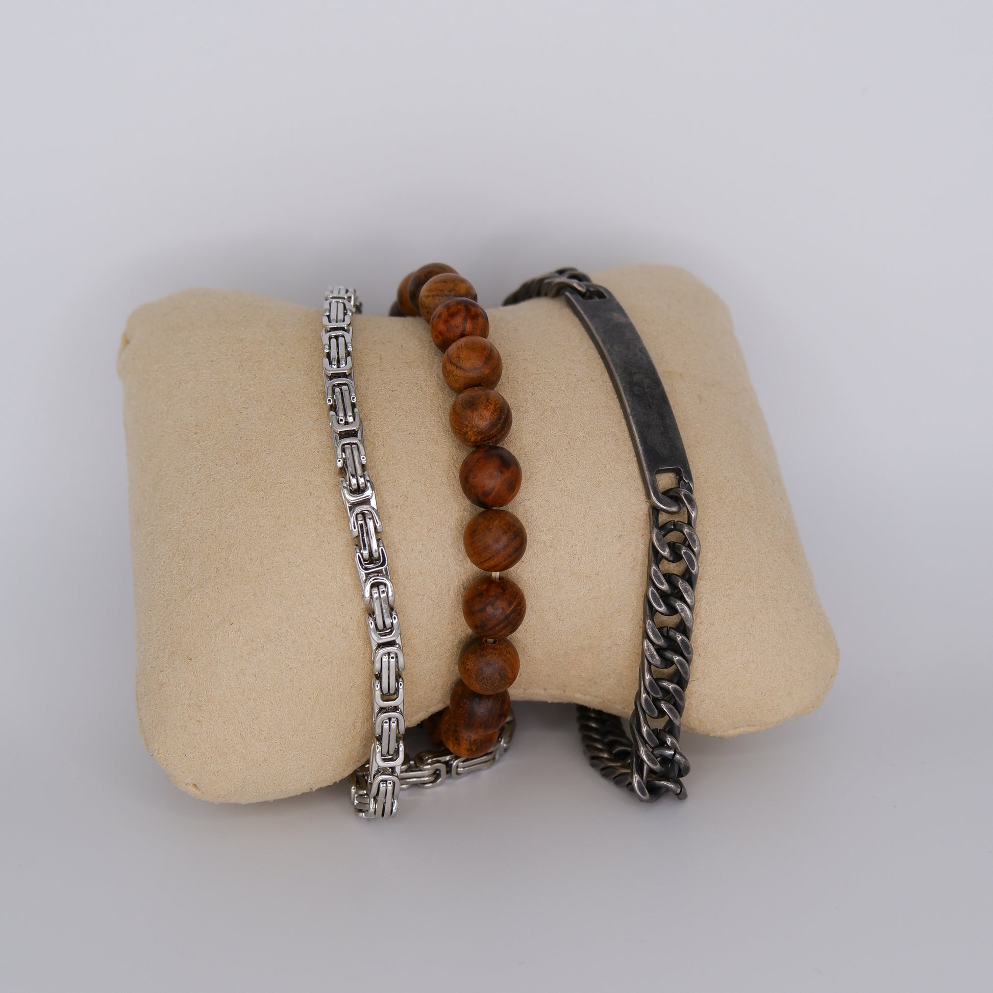Existem 3 materiais diferentes:aço, material hipoalergenico e Prata S925.